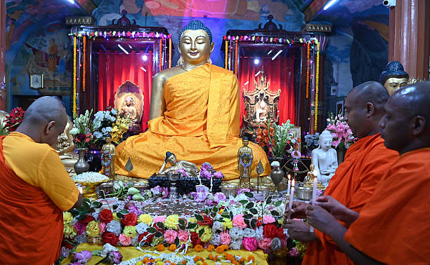 At the spot of descent stands a temple with a statue of the Buddha. The place is also known for a temple dedicated to Bisari Devi and an excavated Ashokan Elephant Pillar.
